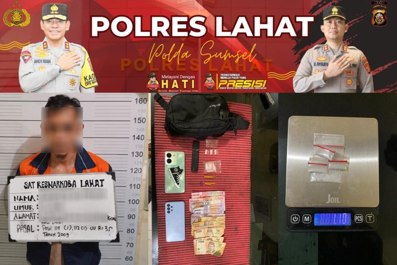 LAHAT SUMSEL, MLCI – Kali ini Tim Walet Satuan Reserse Narkoba Polres Lahat berhasil mengamankan tersangka pengedar narkotika jenis sabu di lingkungan atau area salah satu perusahaan, tepatnya di Desa Karang Endah Kecamatan Merapi Barat.