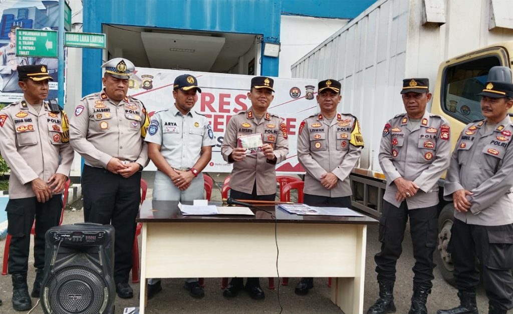 LAHAT SUMSEL, MLCI – Didampingi Kepala Jasa Raharja Lahat Arya SPd, Kapolres Lahat AKBP Novi Edyanto SIK MIK pimpin press conference “ungkap kasus laka lantas tabrak lari” di Kantor Sat Lantas di bilangan Lahat Tengah. Kamis (27/3)