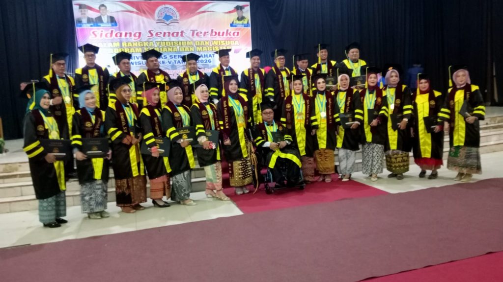 LAHAT SUMSEL – MLCI – Wisuda Sarjana Strata satu (S-1) dan Magister Manajemen Universitas Serelo Lahat ke V tahun 2026, dilaksanakan Selasa (20/1/26) di Gedung Kesenian Lahat. Diikuti 112 orang, dari program S1 berjumlah 86 mahasiswa dan untuk S2 berjumlah 26 mahasiswa. Dengan mengusung Tema : “Dari Kampus untuk Masyarakat Lulusan Berilmu, Beretika dan Berdampak.